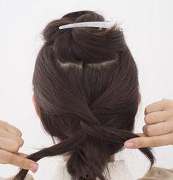 - 将两股头发交叉,再从马尾辫的另一侧穿过,形成一个漂亮的辫子。